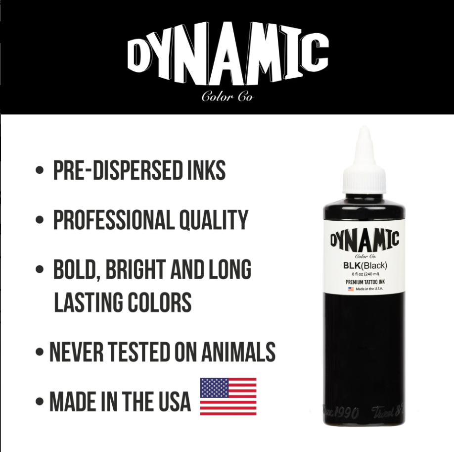 Professional Quality Pre-Dispersed Inks: Proudly made in the USA, Dynamic Color provides premium quality tattoo ink with the most impressive pigment content in the business. Noted for its smooth flow rate, our inks are up to piece — from precise detail work to outlining and shading.